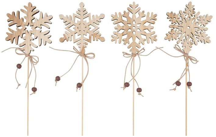 Vločka s korálky dřevěná 8 cm + špejle