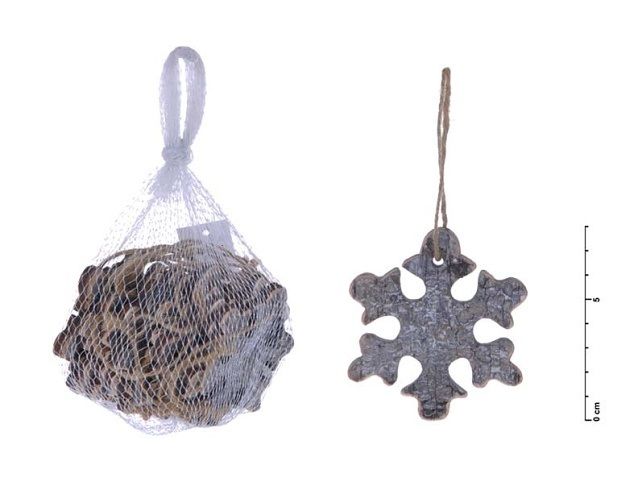 Vánoční dekorace - vločka z přírodního materiálu (kůry stromu) Tato vánoční ozdoba je opatřena očkem a provázkem na zavěšení. Můžete použít na ozdobení vánočního stromečku, zavěsit na dveře, okno a zkrášlit tak Vaše bydlení. Uvedená cena je za 1 ks.