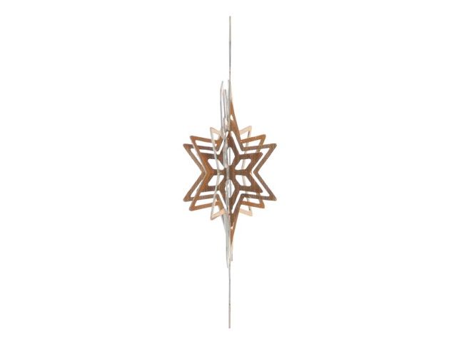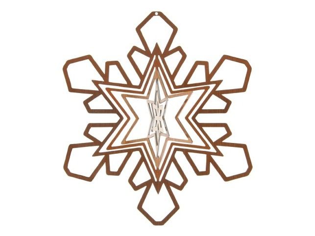 Plechová vánoční dekorace ve tvaru vločky s poutkem na pověšení.