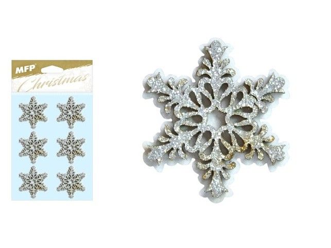 Vločky dřevo stříbrné gliter 6ks se samolepkou