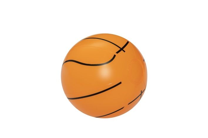 Vodní basketbal Splash 'n hoop je nafukovací hra určená k zábavě ve vodě pro děti od tří let věku. Tento produkt je navržen tak, aby poskytoval hodiny zábavy při střílení míčkem do basketbalového koše přímo v bazénu nebo jiné vodní nádrži. Koš má průměr 61 cm a je vyroben z pevného, odolného PVC materiálu, který je snadno nafukovatelný i vyfukovatelný díky praktickému ventilu. Barevné provedení kombinuje modrou a žlutou barvu, což zajišťuje dobrou viditelnost koše ve vodě. Basketbalový koš je tvořen pěti nafukovacími částmi – dvěma kruhy (spodním a horním) a třemi žlutými sloupky, které drží konstrukci stabilní. Pod horním kruhem je připevněna průhledná síťka, která napodobuje klasický basketbalový koš a pomáhá vizuálně sledovat zásahy míčku. Součástí balení je také nafukovací oranžový míč s černými linkami, který má velikost přizpůsobenou právě pro tuto hru ve vodě. Hra je vhodná pro děti i dospělé, což dokládají ilustrační fotografie zobrazující rodiče s dětmi při společné zábavě v bazénu. Splash 'n hoop je ideální na rodinné dovolené nebo letní dny strávené u vody, kdy umožňuje aktivní a zábavné trávení času. Díky jednoduchému nafouknutí a složení je snadné hru přenášet a skladovat. Tento produkt spadá do kategorie venkovních a sportovních hraček, konkrétně mezi nafukovací bazény, čluny, kruhy a rukávky, což potvrzuje jeho určení pro vodní hry a sportovní aktivity.