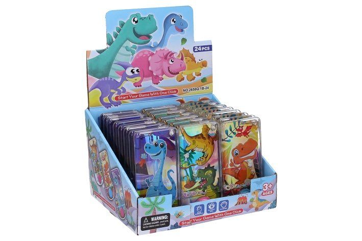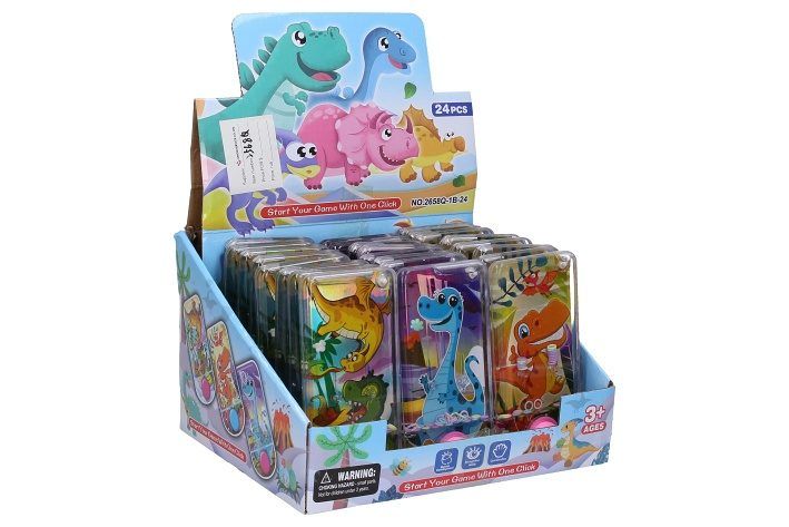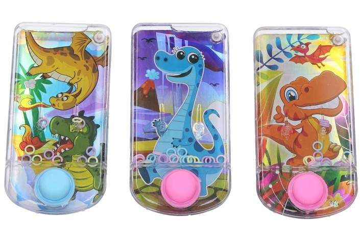 Vodní hra dinosaurus 6,5x13,5 cm. 24 ks display box. 3 varianty - modrý, žlutý, oranžový.