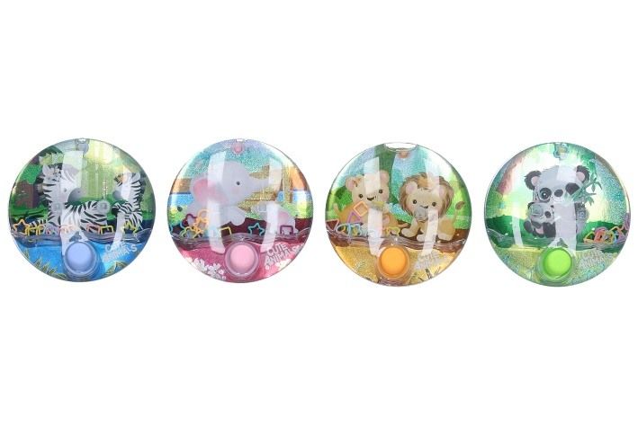 Vodní hra zvířátka. Rozměry 10x10x3 cm. 12 ks display box. 4 varianty - lev, žirafa, panda, slon.