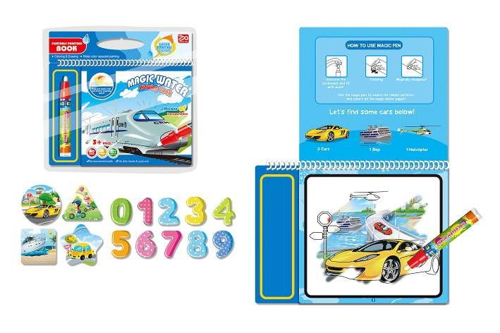 Vodní malování - dopravní prostředky. Rozměry omalovánek 24x23x0,5 cm.