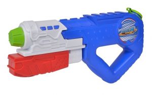 Vodní pistole Blaster 3000 s pumpovací funkcí. Objem nádrže 800 ml. Dosah až 8 m. Délka 32 cm. 2 druhy.