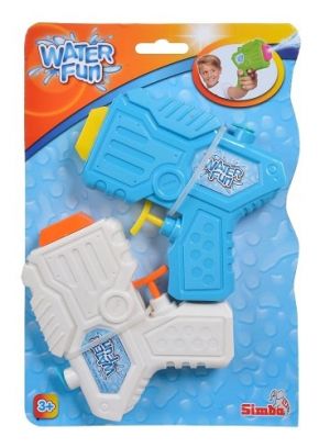 Sada dvou vodních pistolí, objem nádrže 80 ml, dosah až 6 m. Délka 12 cm. 2 druhy.