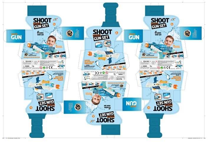 Vodní puška. Rozměry 56x14x23 cm. Dostřel 8 m. 4 módy vodního paprsku.