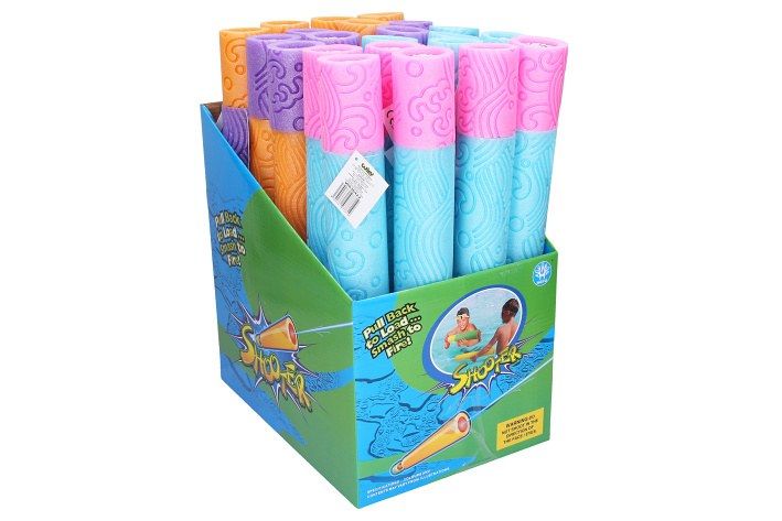 Vodní puška. Rozměry 5x38 cm. 24 ks display box. 4 varianty - modrá, oranžová, fialová, růžová.