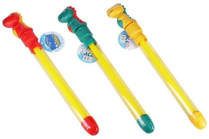Vodní puška dinosaurus - Český obal. Velikost 37 cm. 12 ks display box. 3 varianty - žlutá, oranžová, zelená.