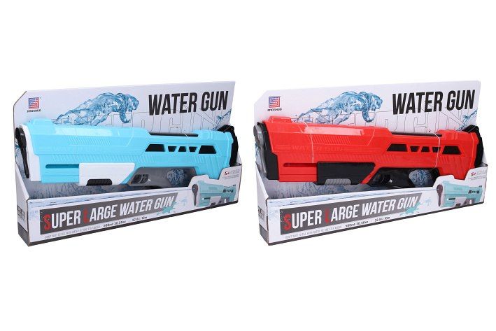 Vodní puška. Délka 52 cm. Střelba pumpováním. 2 varianty - modrá, červená