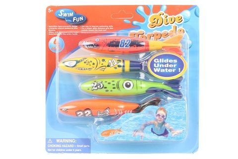 Rakety na potápění o rozměru 12,5 x 3 cm - 4 ks v balení. Vhodné pro zpestření plaveckého a potápěčského výcviku nebo využití v domácím bazénu (pod dozorem dospělého). Rozměr balení cca 20 x 19 x 2,5 cm. Věk 5+