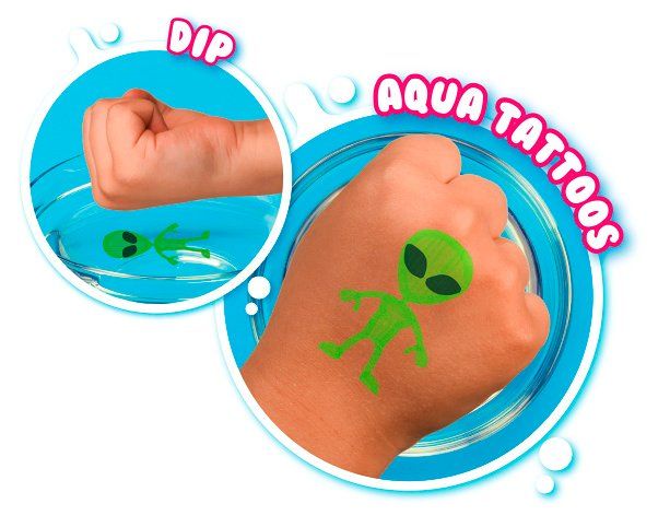 Vyrob si své vlastní vodní tetování. Set pro výrobu tetování obsahuje 8 kouzelných fixů a kreslící podložku. Naklesli obrázek na podložku a opatrně ji vlož do vody, obrázek se ve vodě oddělí od podložky a ty si jej můžeš nalepit na ruku.