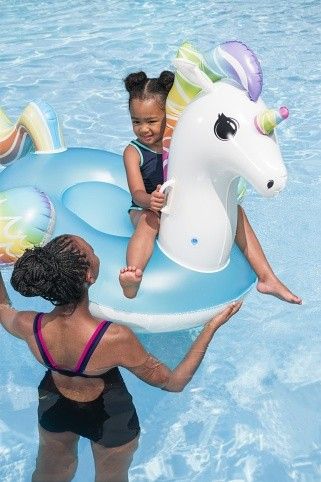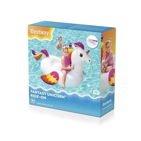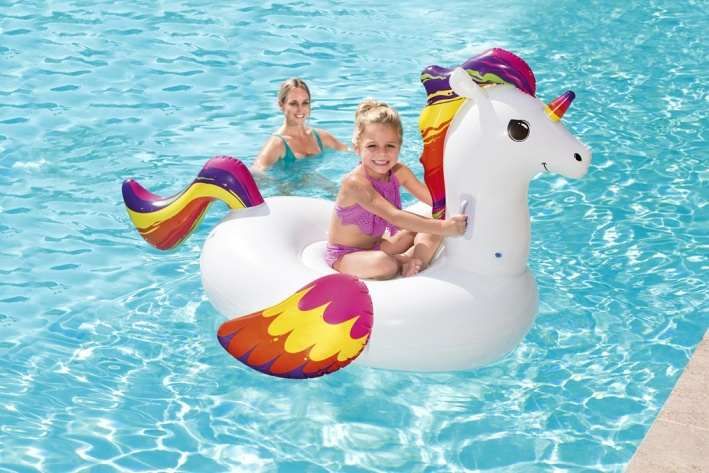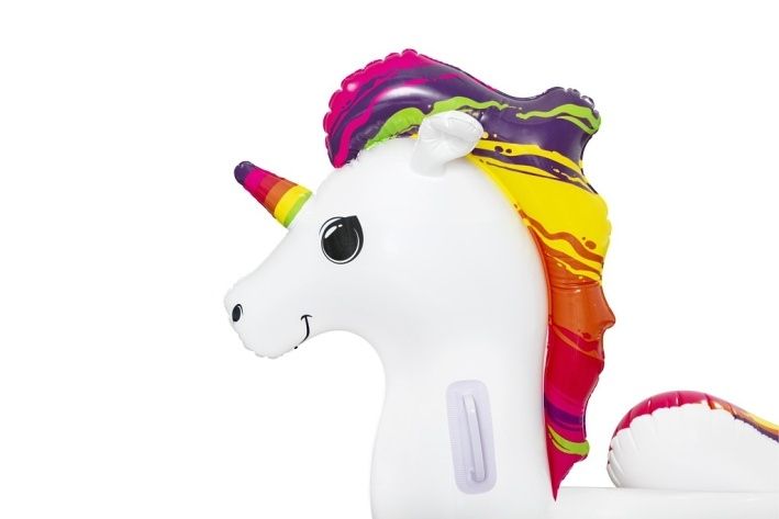 Nafukovací vozidlo ve tvaru jednorožce. Jednorožec má dvě pevná držadla pro pohodlné uchycení. Užij si spoustu zábavy a příjemného osvěžení v horkých letních dnech. Vozidlo je vhodné pro bazény, rybníky i moře. Velikost 155×119 cm. Kvalitní a pevný materiál. Součástí balení je opravná sada. Maximální nosnost je 45 kg.