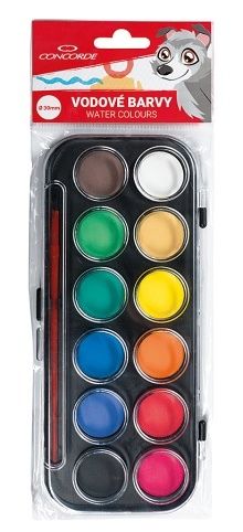 Vodové barvy CONCORDE, 12 barev, 30mm, se štětcem