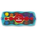 plastová paleta s průhledným víčkem a mnohostranným využitím /místo na jméno, integrovaná políčka pro míchaní vodových barev/
