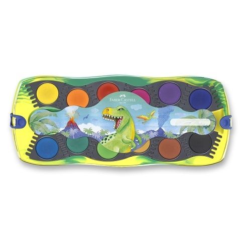 Vodové barvy Faber-Castell Connector Dinosaurus - 13 ks, průměr 30 mm
