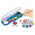 Vodové barvy s malířskou paletou v atraktivním designu. Balení obsahuje 12 barev + 4 vyměnitelné barvy včetně malířského štětce. Vodové barvy jsou určeny pro školu i volný čas. Vysoká pigmentace vytváří jasné a zářivé barvy s vysokými krycími vlastnosti.