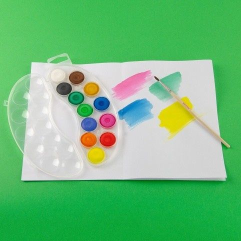 dodáváno včetně štětce, 12 BAREV, O 25 MM, TIP: K vodovým barvám můžete potřebovat i papír, štětce nebo kelímky na vodu.