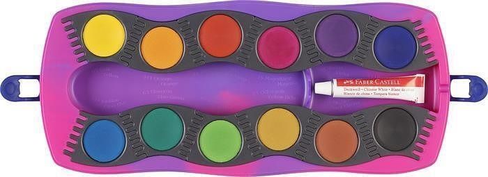 Vodové barvy "Unicorn", růžová, 12 barev, 1x bílá temperová barva + nálepky, FABER-CASTEL