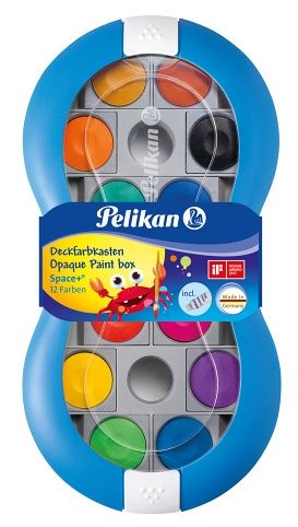 Vodové barvy Space+ 12 barev, kvalitní pro brilantní barvu, silně krycí, dobrá přilnavost, světlostálý pigment, modré