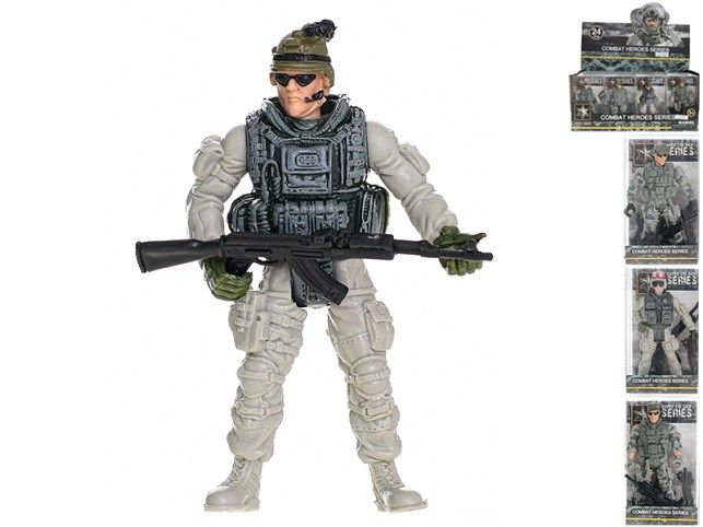 Voják kloubový 10cm stojící se zbraní 4druhy v krabičce