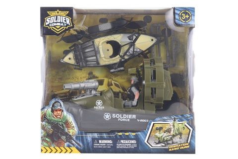 Plastová vojenská sada obsahuje člun, kajak, figurku vojáka a další doplňky. Rozměr balení cca 28 x 26 x 11 cm. Věk 3+