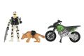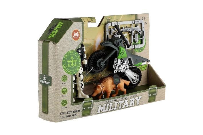 Vojenská sada plast motorka, voják, pes s doplňky v krabici 23x14x4cm