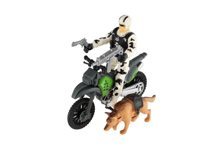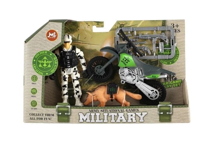 Ponořte se do akčního světa s touto skvělou vojenskou sadou! Sada obsahuje motorku, vojáka, věrného vojenského psa a různé doplňky pro maximální zábavu. Tato sada je ideální pro malé dobrodruhy, kteří chtějí prozkoumat svět armády a vojenských misí.