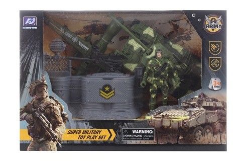 Vojenská sada obsahuje dron, vojáka a tank. Materiál plast. Baleno v krabici. Rozměry balení cac 29x20x8,5 cm. Věk 3+