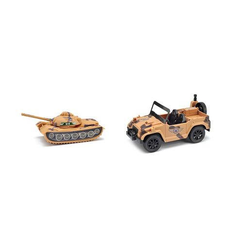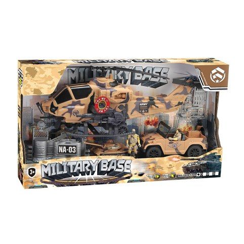 Vydej se na vojenskou misi s tímto parádním vybavením! Sada pro malé vojáky obsahuje helikoptéru 42 cm, vojenský jeep 20 cm, tank 12 cm, 3 vojáky a drobné příslušenství. Helikoptéra po aktivování tlačítek vydává reálné zvuky spolu se světelným efektem. Tato funkce vyžaduje použití 2 ks baterií typu LR44, které jsou součástí výrobku. Auto jeep jezdí na volný chod. Tato sada nesmí chybět ve tvé armádní jednotce!