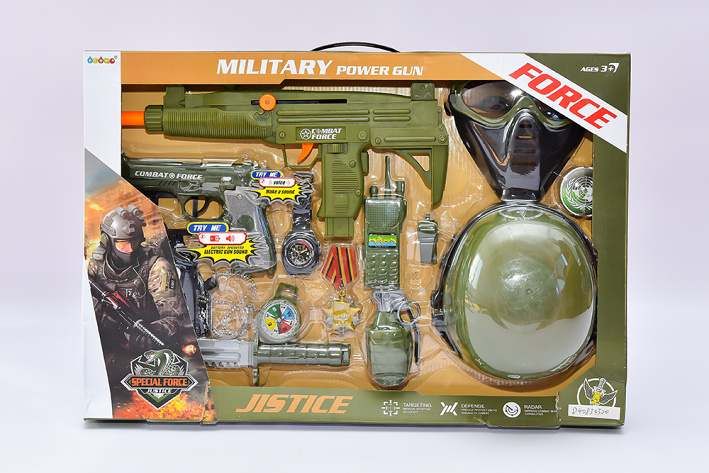 Sada pro malého vojáka s helkou, pistolí a dalším příslušenstvím.
