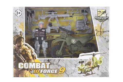 Vojenská sada. Balení obsahuje vojáčka, motorku a další doplňky. Rozměr balení cca 23 x 17 x 6,5 cm. Věk 3+