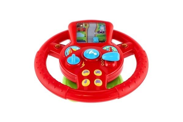 "Řiďte" tímto volantem a cestujte po mini městě. Úžasné zvuky a efekty při řízení, které vydává opravdové auto. Volná jízda autem s pohyblivým se obrázkovým pozadím. Baterie 3x AA jsou součástí balení.