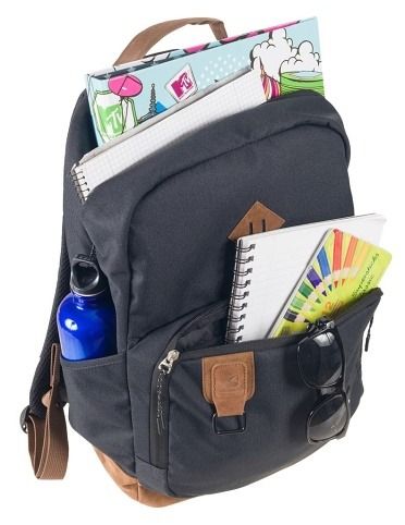 Volnočasový batoh má jednu hlavní komoru uzavíratelnou na zip, která obsahuje dvě vnitřní kapsy. Na zadním dílu je našita větší polstrovaná na tablet a na ní ještě jedna jednoduchá. Obě jsou uzavíratelné na suchý zip. Naproti ní je síťovaná dvojitá kapsa jejíž horní část je lemována pruženkou. Přes polovinu předního dílu je velká kapsa na zip. V horní části je našité poutko. Uvnitř je další kapsa na zip na které je našitý organizér, který tvoří několik různě širokých kapsiček. Na obou stranách batohu jsou kapsy, obě volně přístupné. Jedna je zdvojená s uzávěrem na zip.Volnočasový batoh je vybaven polstrovanými zády, pro pohodlné a správné nošení s ozdobným prošitím. Dále má polstrované, délkově nastavitelnými řemeny s reflexními prvky. Dno je zdvojené, jeho vnější část překrývá výztužný materiál s velurovým povrchem, který je velmi příjemný na omak.