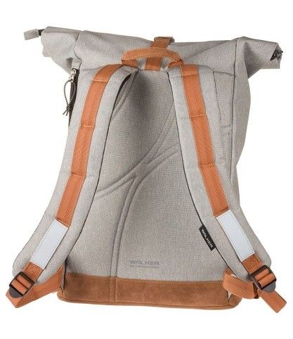 VVolnočasový batoh WALKER ROLL-UP ECO navazuje na předešlou úspěšnou řadu batohů ROLL-UP . Batoh má moderní design a propracovanější provedením. Tvoří jej jedna velká vysoká komora v horní části uzavřená zipem. Horní část lze rolovat, čímž je možno měnit velikost batohu a tuto následně zajistit trojzubcovou sponou na předním části. Uvnitř komory, v dolní části, je vyztužená přepážka, na které je našita velká otevřená kapsa. Na předním dílu je kapsa na zip. Další velká kapsa je v zádové části batohu pod zádovým polstrování, která se také uzavírá na zip. Záda jsou celoplošně polstrována s ozdobným prošitím. Nosné řemeny jsou široké, polstrované a umožňují pohodlné nošení batohu. V dolní části jsou řemeny opatřeny reflexními prvky. Pro nesení v ruce je v horní části nosných řemenů jednoduché držadlo. Dno je zdvojené, jeho vnější část a držadlo překrývá výztužný materiál s velurovým povrchem, který je velmi příjemný na omak. Základní textil má hydrofobní úpravu, což zajišťuje obsahu batohu bezpečí za každého počasí.
