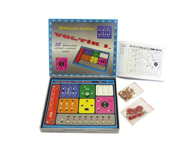Stavebnice VOLTÍK I. je určena dětem od 6 let a umožňuje sestavit podle jednoduchých návodů nejméně 35 elektronických modelů bez pájení s barevnými světélky a tónovým bzučákem. Nevyžaduje žádné znalosti elektroniky! Modely mají různou obtížnost sestavení, od nejjednodušších, například světelný a zvonkový obvod, různé houkačky, až po měřič vlhkosti, vysílač a přijímač Morseovy abecedy, elektronický klavírek či telegraf. Napájení: 4×AA baterie (nejsou obsahem balení).