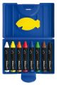 Voskové pastelky Pelikan 8 barev, intenzivní barvy, vodou roztiratelné, s včelím voskem, se škrabkou, průměr 11,8 mm, délka 79 mm, v modrém pouzdře