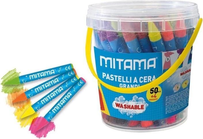 Voskovky, 54 barev, v plastovém kyblíku, MITAMA 62988