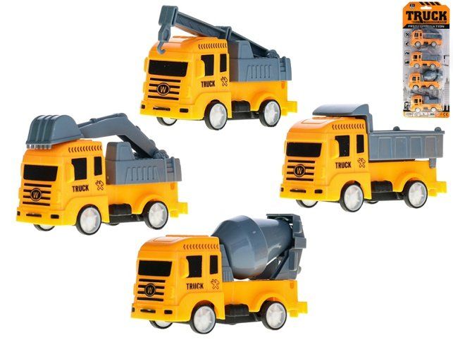 Vozidla stavební 8-9cm na zpětný chod 4druhy 4ks na kartě