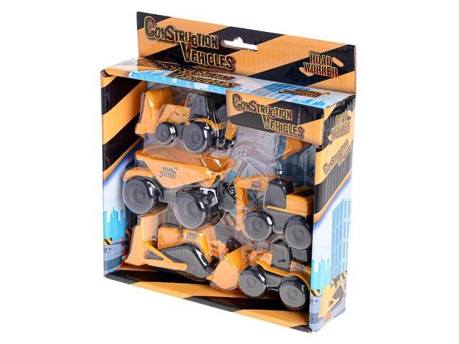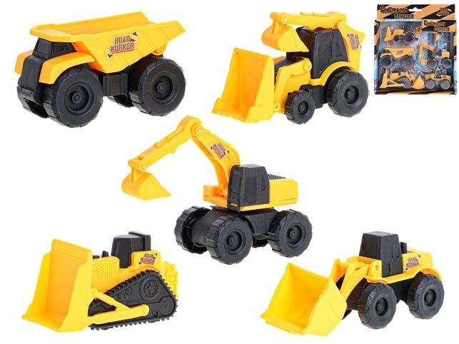 Vozidla stavební 9-11cm volný chod 5ks v krabičce