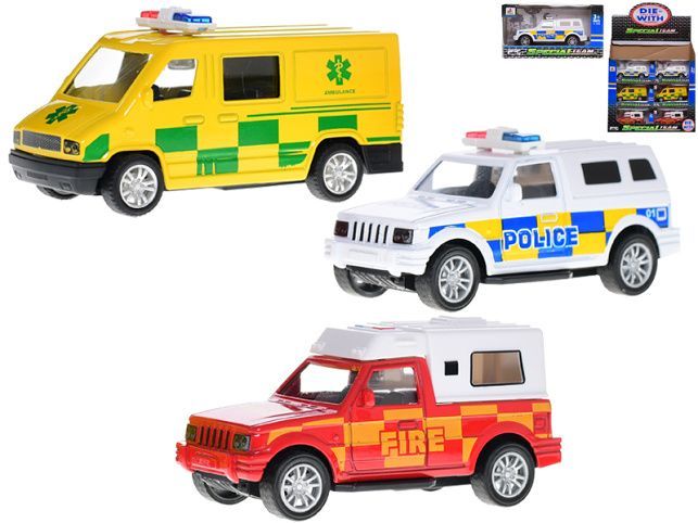 Vozidla záchranných složek 11cm kov zpětný chod 3druhy v krabičce