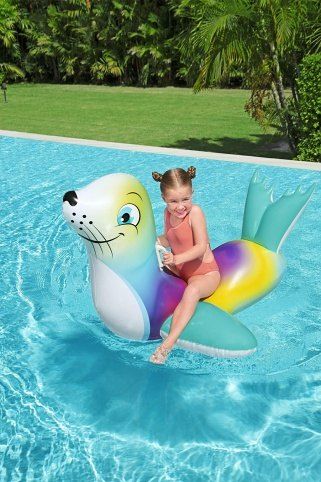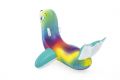 Nafukovací vozidlo ve tvaru tuleně je určeno pro zábavu dětí ve vodě a nabízí rozměry 157 × 114 cm, což poskytuje dostatek prostoru pro pohodlné sezení. Tento model je vyroben z pevného a odolného vinylu, který je zároveň příjemný na dotek a dostatečně odolný vůči mechanickému poškození během hry. Povrch hračky je barevně velmi atraktivní, kombinující jemné přechody barev od světle zelené přes žlutou a fialovou až po modrou, což dodává produktu hravý a veselý vzhled. Tuleň má charakteristický usměvavý výraz, velké oči a černý čumák, což přispívá k jeho přátelskému a vesele laděnému designu. Pro bezpečnost a pohodlí při používání jsou po stranách tuleně umístěny dvě pevné, bílé úchyty, které dětem usnadňují držení a pomáhají udržovat rovnováhu na vodě. Ploutve a ocas tuleně mají světle tyrkysovou barvu s bílým lemováním, což zajišťuje stabilitu a lepší ovladatelnost nafukovací hračky. Tuleň disponuje dvěma samostatnými vzduchovými komorami, což zvyšuje jeho bezpečnost a stabilitu při hře. Nafukovací ventil je umístěn na spodní části těla a je průhledný, umožňující snadné a rychlé nafouknutí i vyfouknutí. Maximální nosnost této hračky je 45 kg, což umožňuje její využití zejména malým dětem od tří let věku. Součástí balení je také opravná záplata pro případné menší poškození nebo propíchnutí. Nafukovací tuleň je ideální volbou pro letní radovánky v bazénu nebo na klidné vodní ploše, kde děti mohou bezpečně rozvíjet svou rovnováhu a motorické schopnosti při zábavě ve vodě. Díky svému designu a funkčnosti představuje zábavnou a praktickou hračku pro venkovní a sportovní aktivity.