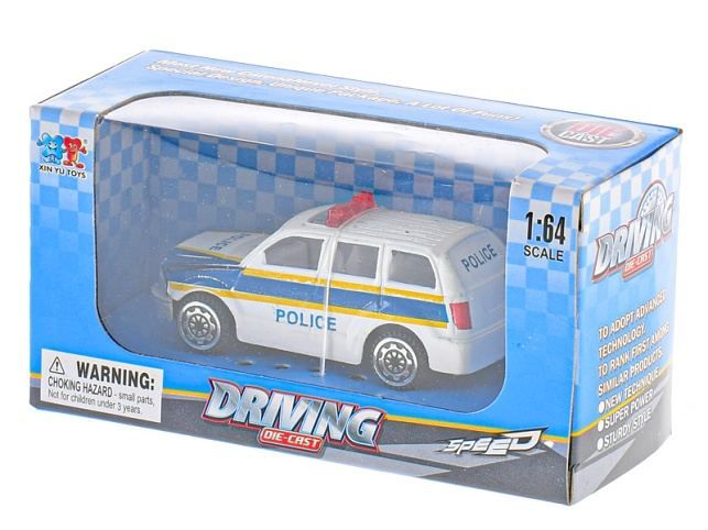 Vozidlo policejní 7-8cm kov 1:64 volný chod 6druhů v krabičce