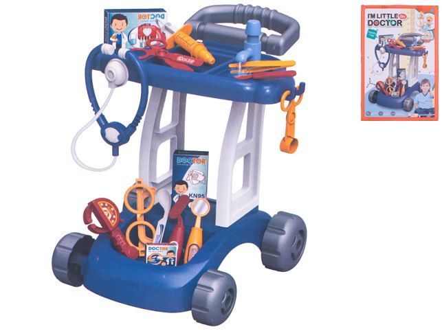 Vozík doktorský 37x31x37,5cm modrý s doplňky v krabičce