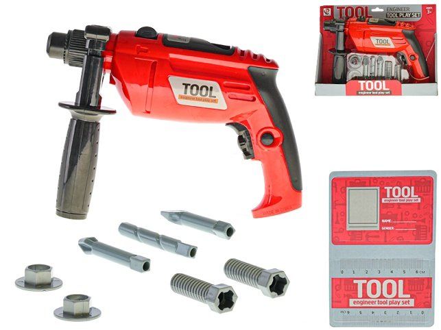 Vrtačka 22cm červená na baterie s doplňky v krabičce