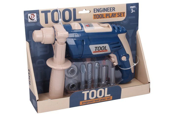 Vrtačka elektrická set. Velikost vrtačky 27 cm. Montážní sada. Kromě vrtačky sada obsahuje 3 různé nástavce na vrtačku a 2 šrouby s maticemi.