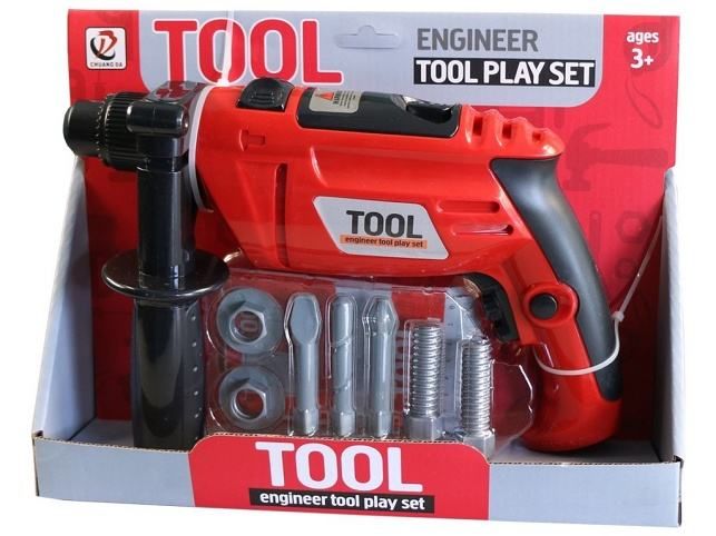 Vrtačka s příslušenstvím, 11 ks, 29 x 22 x 8 cm. Pro všechny malé kutily. Hračka je určena pro děti 3+. Rozměr hračky je 29 x 22 x 8 cm. Materiál hračky je plast. Balení hračky je window box. Produkt je určený pro kluky. Ke zprovoznění produktu jsou potřeba 2 AA baterie. Baterie nejsou součástí balení.