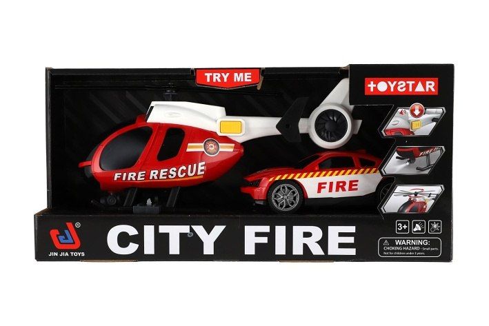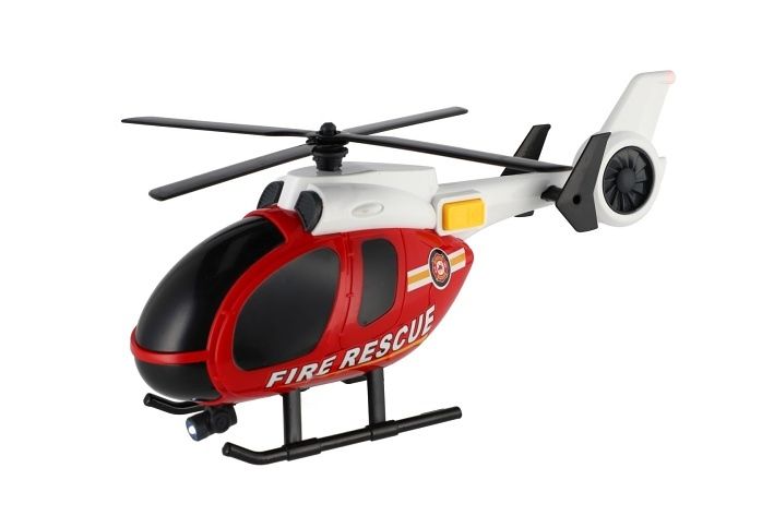 Vrtulník,auto hasiči plast na baterie se světlem se zvukem v krabici 37x17,5x12cm