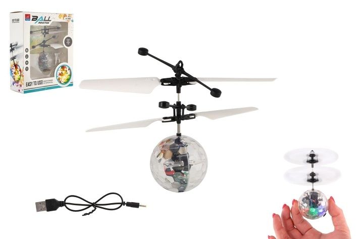 Vrtulníková koule se zabudovaným čidlem nabízí možnost ovládat její let pomocí dlaně. Děti mohou rukou určovat výšku letu. Za letu koule svítí. Nevyhazujte do vzduchu, pouze postavte na ruku. Balení obsahuje také USB kabel pro rychle dobíjení.