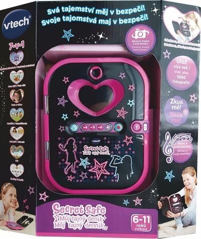 Zabezpečený deníček, fotoaparát, videokamera, make-up studio, virtuální mazlíčci, kreativní a vzdělávací hry, budík, hlasový záznamník, plánovač, animační studio, úprava fotografií.... a mnohem více! To vše najdeš v deníku Vtech Kidi Secret Safe - Můj tajný deník ®. Deník lze odemknout pouze vlastní tváří nebo tajným heslem.